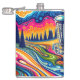 Unik ai-konst som skildrar en färgfull vintage för återcirkulation av färgad, gräs träd och berg.