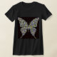 Kvinna svart utslagsplats med konst som presenterar en psychedelic fjäril på bekläda.