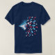 Ljus synar färgrika psychedelic ögamanar skjorta med en vektorillustration av en blått sett från sidan. Ögat är brett öppnar i häpnad, och blått, vit och rosa stänk kommer ut ur den i stället för tårar.