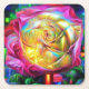 En mesmerierande digital målning av ett ro som brinner med psykedelisk energi och regnbåge. De levande rosa petalerna figurerar runt en glödande gyllene kärna och skapar en surrealistisk blommigt.