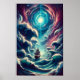 En magisk bild av en enorm kosmisk virvelpool med vibrant färg. I mitten lyser ett lysande ljus, omgivet av snurrande galaxer och stjärnor. Enormt vinkar krasch och vrid, som liknar kosmos form. Vid vatten seglar en ensam frakt, dvärgad av den oerhörda skönheten runt den. Planeter hover i avstånd och hela scenen utstrålar mysterium och .