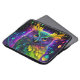 Svart bakgrund med droppar och spektrum med flera färgader. Fast svart på baksidan. Uggla ligger i en regnbåge av färg. Orange, gult, grönt, säl, rosa och blåfjädrar och ligger sitta på gren träd.