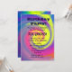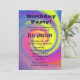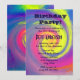 Trippig psykedelisk födelsedagsfest inbjudan. En ljus och färgrik abstrakt virvel av färger. En kalejdoskop av färger som virvlar runt i en spiral malström. Livlig och ljus regnbåge av färger som gul, rosa, lila och blå. Anpassa / personifiera med dina festdetaljer.