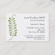 This is a modern Psychotherapist Eucalyptus European business card. This simple but elegant business card is designed with a single eucalyptus stem in teal shades with your name, profession, contact information, address and other information in a classic white background.