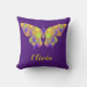 En vacker personlig psyke-delisk fjärilmönster kudde. Svängande målning i lila gul och tealgrön på en lila bakgrund. Använd bara mallen för att lägga till ditt föredragna namn och du har den perfekta personliga gåvan. Moderna färgglada fjärilar vattenfärg-målning original konstverk av konstnären Catherine Sweetman