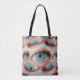 Psykedelisk abstrakt bakgrund av förvrängd öga p tygkasse