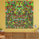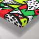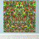 En stamsammansättning av många inslag i abstrakt, grönt, rött, svart och vitt visas i denna färgstarka abstrakt, utsträckt kanvastryck.