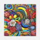 A.I. Assisterad utskrift av svårfärgade blommor omgivna av snurrande, psykedeliskt mönster interplay med surreella former och harmoniska nyanser.