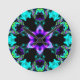 Psykedelisk Hippie Flower Lila Teal and Black Rund Klocka
