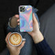 Färga snurrar och bubblor i pastellskuggor av grönt, gult, blått, lila och rosa på iPhone 14-telefonväska Den här snyggten är tillgänglig i en mängd olika telefonväskor. Bildtext och monokulärtext kan vara personlig eller borttagen.