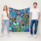 Psykedelisk Lila och Lime Green Garden Flowers Fleecefilt