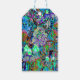 Psykedelisk Lila och Lime Green Garden Flowers Presentetikett