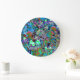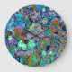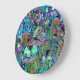 Psykedelisk Lila och Lime Green Garden Flowers Stor Klocka