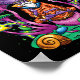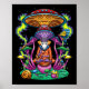 Bilden skildrar en psykedelisk scen med ett centralt figur av en klok tittar man som lägger sig i en lotus position. Han är omgiven av en pulserande uppsättning färgstarka svampar, inklusive en stor, paraplyformad svamp som torn ovanför honom. Flamor från olika färg dansar runt svamparna och skapar en mystisk och annan världslig atmosfär.