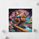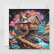 Bilden är generativt innehåll. Jag har gjort trädgårdsstugedesigner men aldrig gjort en pepparkakestuga på en design så jag tänkte varför inte. Jag gillade vattnet i designen och tänkte sedan om det skulle finnas rinnande vatten vid jul? Jag är inte säker på vem den personen är till höger om taket på stugan. En av de saker jag gillar med bilden är det färgglada taket.