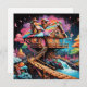 Bilden är generativt innehåll. Jag har gjort trädgårdshusdesigner men aldrig gjort ett pepparkakshus på en design så jag tänkte varför inte. Jag gillade vattnet i designen och undrade sedan om det skulle finnas rinnande vatten vid jul? Jag är inte säker på vem den personen är till höger om taket på trädgården. En av de saker jag gillar med bilden är det färgglada taket.