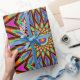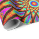 Mycket detaljerad psykedelisk mandala med färgstarka former och mönster.