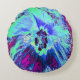 Psykedelisk Retro-Grönt och Blue Hibiscus Flower Rund Kudde
