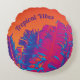 Känn de tropiska Vibes i den här runda psykedeliska popkonsten runt kudden med ljusa, flerfärgade nyanser av orange, rosa, blått och lila handflatan. Dessa kuddar är roligt, vibrerande och färgstarka! Natur med en lekfull pop av vibrant färg. Anpassa med en Namn eller med en egen text. Den här bilden är ett originalnaturfotografi av JLW_PHOTOGRAPHY