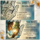 Affärskort med en hand handflatan-kontur på en drömaktig bakgrund. På baksidan finns utrymme för anpassningsbarnas foto. Underbar för en handflatan-läsare, lycksökare eller psyker.