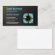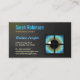 © Sunny Mars Design. Det här affärskortet innehåller en iris av ett slående blått öga som tittar genom ett fönster med ett svart ram mot en mörk bakgrund. Perfekt för psykologer, optometriker eller annan ögonspecialist.