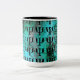 Vassare marmorerad turkos, svart och grått tvåtonad mugg med upprepad psykologisk symboldesign. färg är enastående! insida i denna mugg är svart, vilket på ett vackert sätt står i kontrast till den yttre utformningen. Gör en fin gåva eller en matchande uppsättning skulle vara underbart i en klinisk praktikplats. Andra alternativ för mugg är tillgängliga med den här designen.