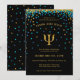 Inbjudan till Psychology School Studenten med blue och guld glitter konetti och en guld psi-symbol. Anpassa texten till ceremonin i studenten! Obs! guld glitter är en tryckt effekt, och inget glitter kommer att användas för att skapar dessa inbjudningar.
