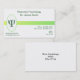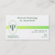 En visitkort med gröntbrytningar och ett psykologisymbol. Designen är för en psykolog eller en psykologiprofessor.