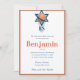 Du är dagens stjärna! Visa det på sportig stil med den här Orangen blå judiska idrotten Basketball Pub Mitzvah inbjudan eller Bat mitzvah inbjudan.
