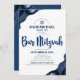 Pub Mitzvah Simple Modern Navy Blue Agate Script Inbjudningar