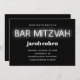Coola modern pub mitzvah spara datum meddelande med "pub mitzvah" i vitt ljusnande neon ljus mot svart bakgrund.