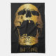 Golden metallisk skalle Bartender Pub Towel. Pub Towel Glass Guld Skull. Pub Towel eller kökshandduk för hemmabruk. Abstrakt Guld metallskrikande skalle, martinistiskt glas och metallisk design mot svart bakgrund. Anpassa pub eller kökshandduksbakgrunden till färg online för att skapa perfektens skallteman för hemdekan eller pub.Anmärkning: Ingen faktisk metallisk metall används i den här konstruktionen.