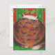 En tortoiseshell-katt i lycklig (som liknar en julpudding!) sitter på en grönt kudde mot en röd och grönt, som är skuren i löv. Med ett vykort som är utformat så att du kan anpassa anpassadet med egen text, bilder och egna idéer. En färgad-penna teckning från Jess Perry.