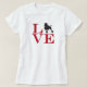 För hund och pudel älskare. "KÄRLEK" i ord är i rött och staplat med "O" ersatt med en silhuettbild av pudel. Det finns också en version för mörkens färgad T.