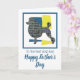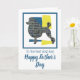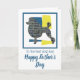 Pudelhund silhuett i gul, blå och svart modernt rutmönster. ‘Till den bästa hundpappan’ och ‘Glad Fars dag’ på utsidan och älsklig text på insidan kan ändras till vad du vill. Ett bra sätt att fira en djurägares Fars dag.