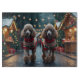 Denna festliga design fångar den glada känslan av semestern, med en bedårande hundar.Bosatt i en vintersaga, komplett med ett dekorerat julgran, och vackert inslagna presenter. Snöflingor faller försiktigt, vilket ger en magisk touch till scenen, medan de levande färgerna på semesterdekorationerna skapar en varm och glad atmosfär.