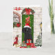 Pudel hund jul sittande utanför dekorerat hem med julkrans, julgran är en perfekt julklappsidé för hundälskare.