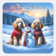 Pudel och Snögubbe jul Fyrkantigt Klistermärke