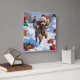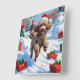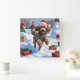 En graciös pudel springer glatt genom snön iförd en klarröd julhatt som framhäver den festliga känslan under säsongen. Med sin eleganta hållning och livliga charm återspeglar denna vinterscen vackerligen personligheten hos denna intelligenta och älskade ras, samtidigt som den fångar semesterns magi.