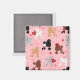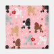 Cute Valentine Day Pudel med svart, vit, grått, aprikos och brunt färg jackar att bära röd, rosa och vit polka punkt och svettare med spritt tass avtryck och pil mot rosa.