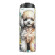 Ett flytande pudel med en häpnadsväckande gaze bildas mitt i en mjuk vattenfärg tvättat av solblommor, rosa peonier och känsliga fjärilar. Det trevliga färg och det konstnärliga stil fångar pudelns söta natur inom en vismisk blommigt.