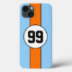Anpassningsbar numrerar fodral för iPhone 6 i berömd pudrar blått- och orangetävlalivrén. Skräddarsy, genom att tillfoga din favorit, numrerar eller initialt, Djärv tävlings- randiPhone 6 täcker i iconic färgintrig.
