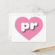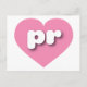 Det här vykortet har en lugn, coola rosa hjärta som innehåller det fet, rundade, vita nedre fodral brev pr, en lekfull version av förkortningen för Puerto Rico, den förtrollade iseln.