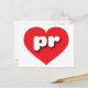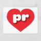 Detta vykort har ett rött hjärta med feta, rundade gemener pr, en lekfull version av förkortningen för Puerto Rico, den förtrollade ön. Baksidan av vykortet är tomt och väntar på dina handskrivna känslor eller personliga text.