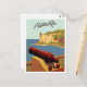 Puerto Rico vykort, se från fästningen, kanon på havet. Vintagens vykort.