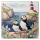 "puffinfåglar", "svarta och vita puffins", "röda kustfyr", "färgkonsmålning", "havsvattenlandskap", "söta havsfåglar i kusten", "vackra målade djur", "blommor i blommigten av pastellblommor", "färgstark sommartid i vår", "sommartid i sommar"