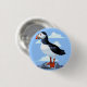 Cute Atlantic Puffin-sjöfågel, med hans typiska svarta och vita vass och skarp färgad, som står på sten, i oceanen. Original Vector Illustration Copyright BluedarkArt ChameleonArt.