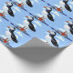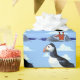 Cute Atlantic Puffin-sjöfågel, med hans typiska svarta och vita vass och skarp färgad, som står på sten, i oceanen. Original Vector Illustration Copyright BluedarkArt ChameleonArt.