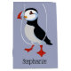 Puffin Design Gift Bag med anpassadets bakgrund färg och anpassning som tillval.