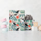Färglöst och roligt Puffin mönster med mycket lush, grönt foliage på varm beige bakgrund. Grönt och orange färg.